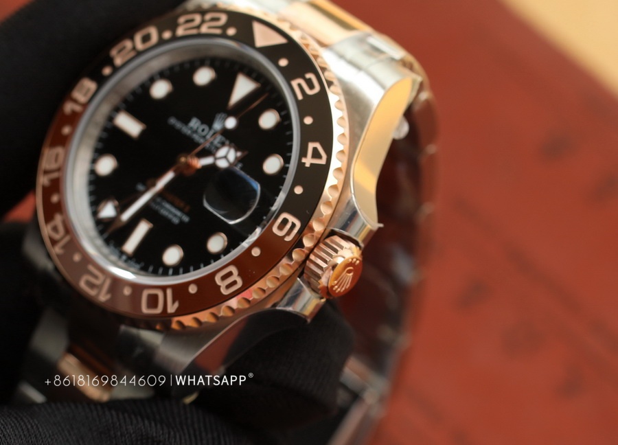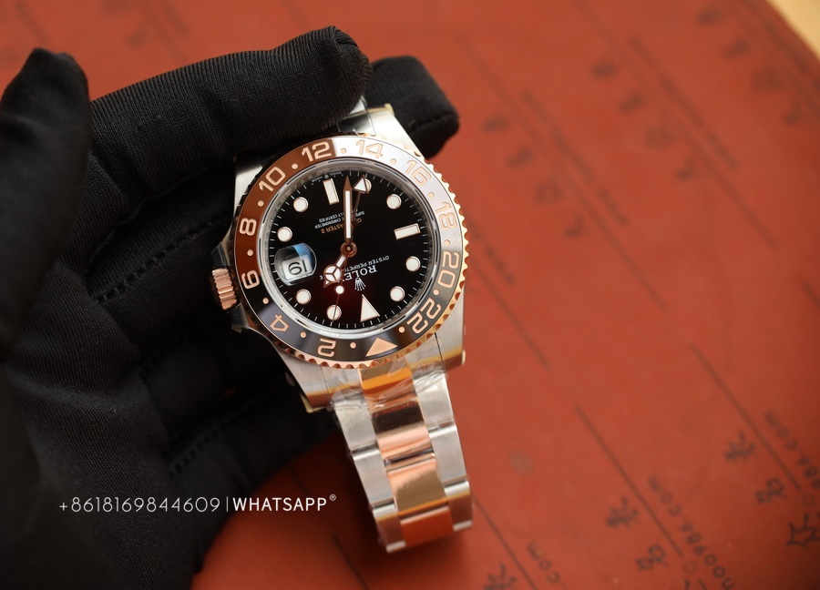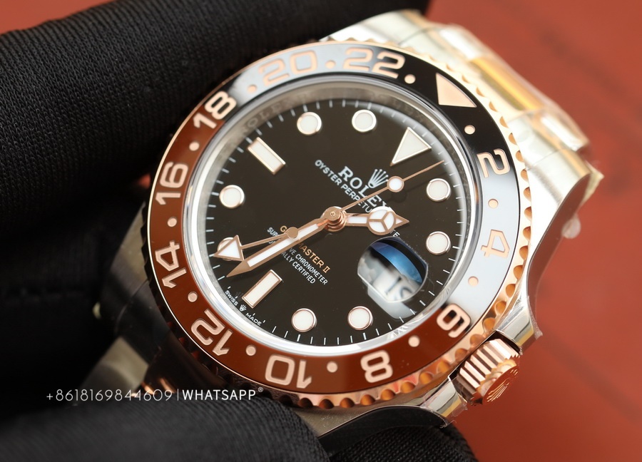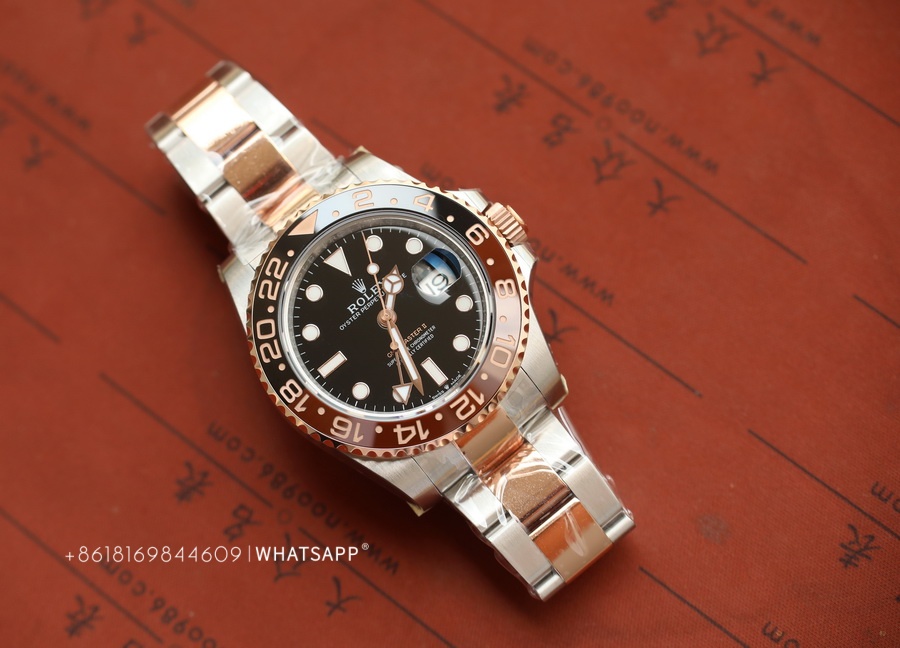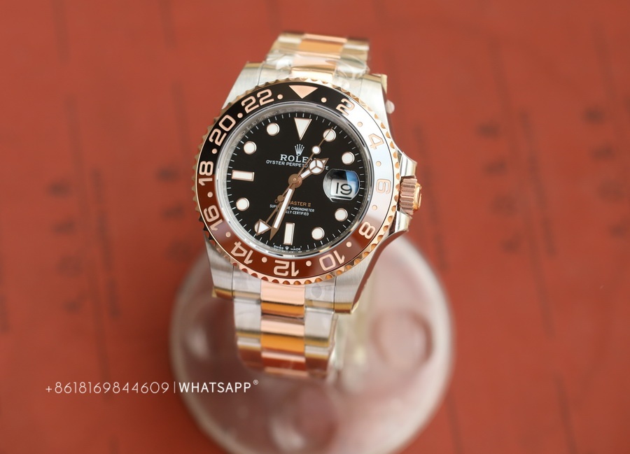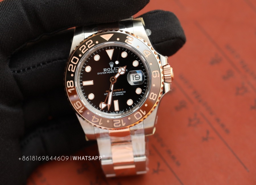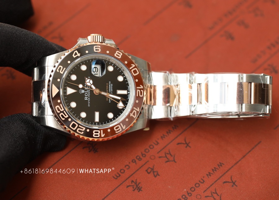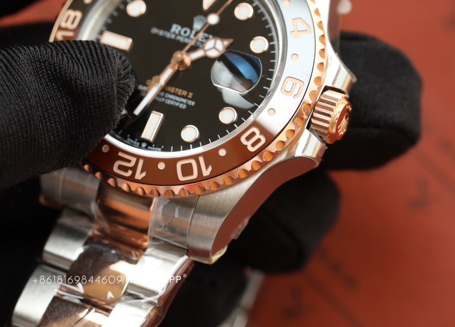 This Rolex PERPETUAL GMT-Master II (Two-Tone) watch is produced by Factory C, with a diameter of 40mm. It features a replica 3285 movement, dual-time functionality, and a power reserve of approximately 70 hours. The bezel of the watch is crafted using ceramic technology, with two different colors of ceramics pieced together. The assembly process is quite challenging, requiring seamless integration of the two ceramics, resulting in a higher price for this series compared to the replica Rolex SUBMARINER. Undoubtedly, this series of replica Rolex watches from Factory C is among the best.