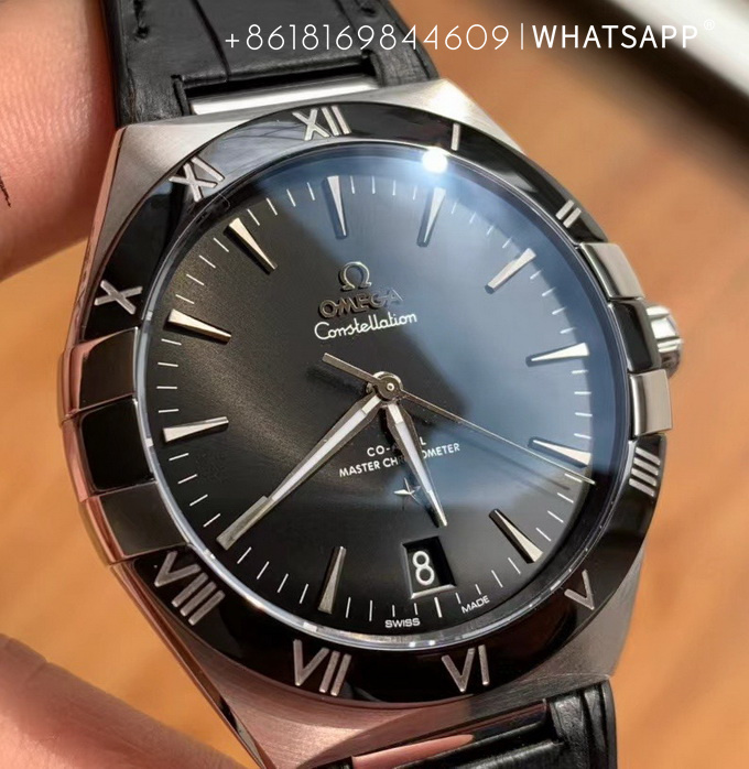 This is the fifth generation of the OMEGA CONSTELLATION watch, featuring significant stylistic changes with more sporty elements. The watch has a ceramic bezel, a leather front strap with a rubber underside, and a diameter of 41mm, slightly larger than the previous model. It houses a replica 8900 movement, known for its excellent stability from VS factory.