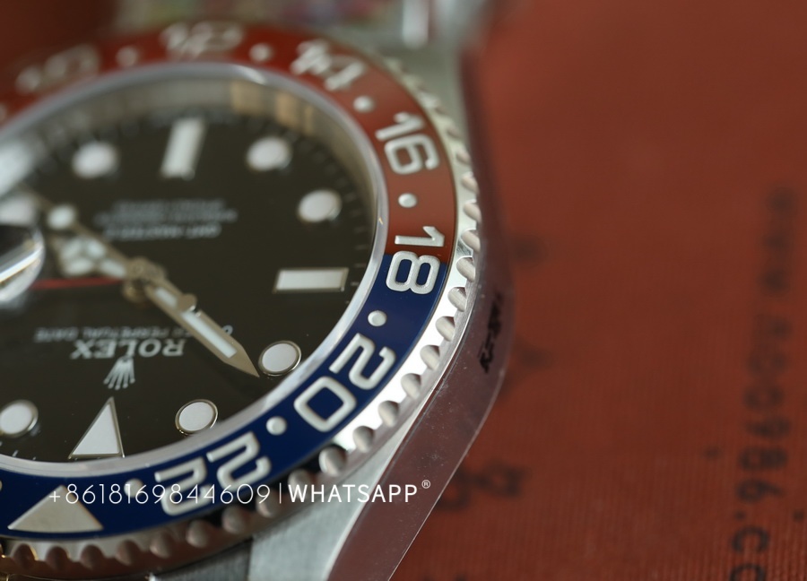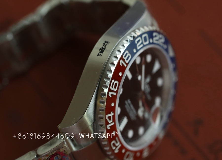 The genuine version of this watch has a very high retail price, and the current market price is double the original price, indicating its high demand. The main reason for its continuous popularity is the ceramic bezel with a distinctive blue and red combination, resembling the colors of "Pepsi," making it highly recognizable.