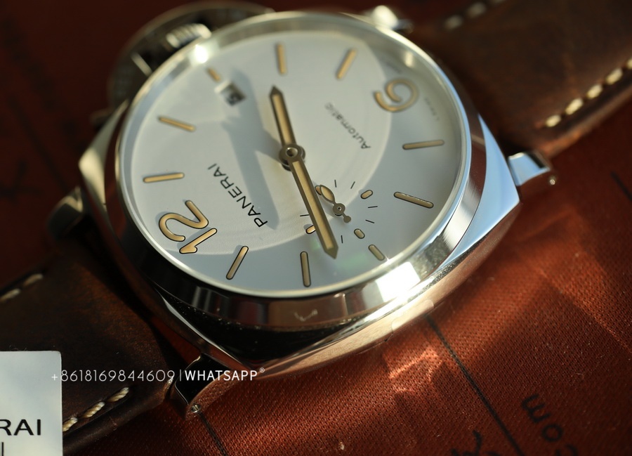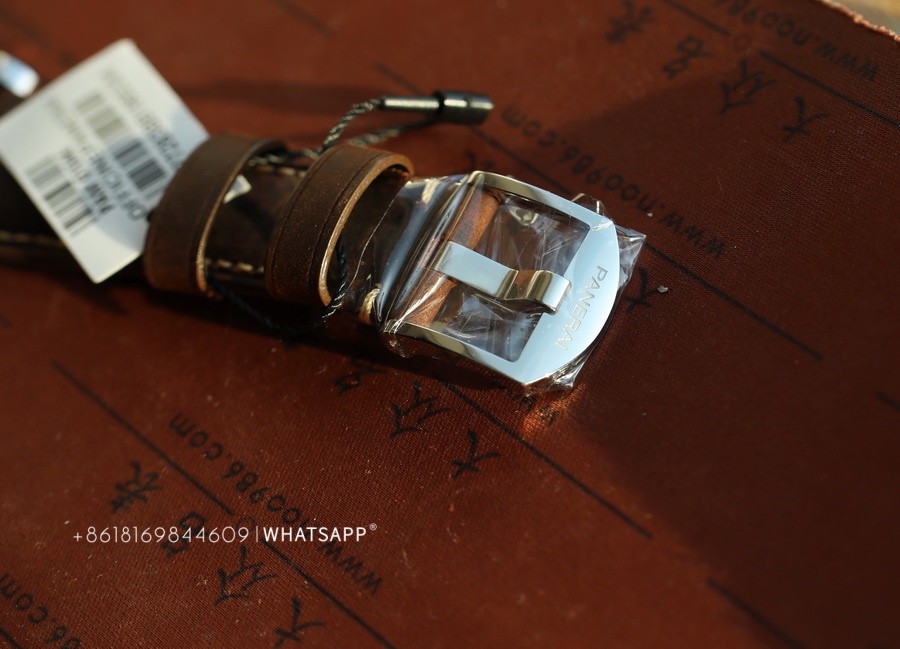 VS Factory excels in replicating movements, and this watch is equipped with the P.900 mechanical movement replica. It not only closely mimics the external appearance but also replicates the functionality perfectly. The stability has been affirmed by the market and time. The strap features brown calf leather with beige stitching, adorned with Panerai engravings on the inside.