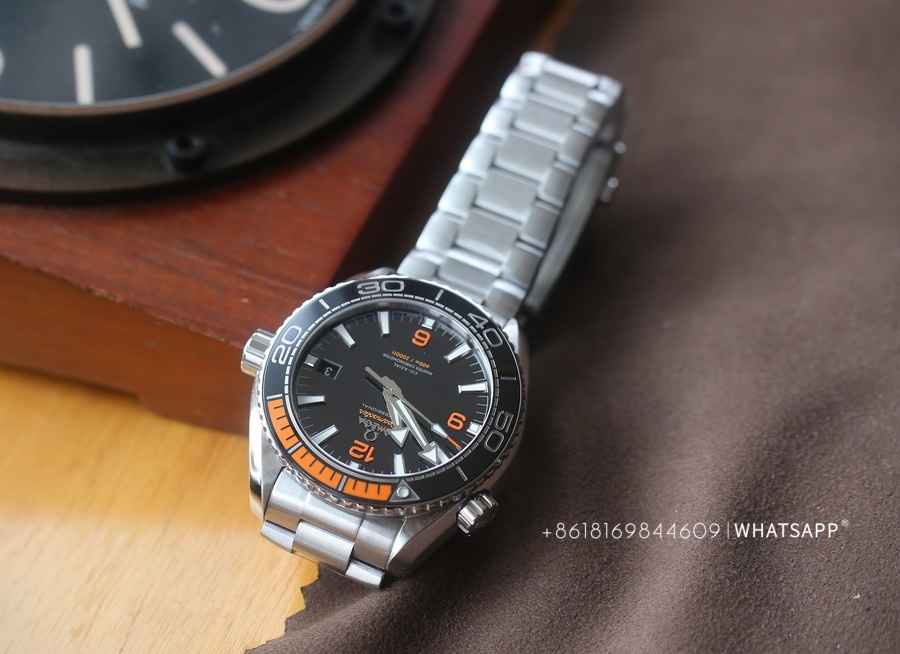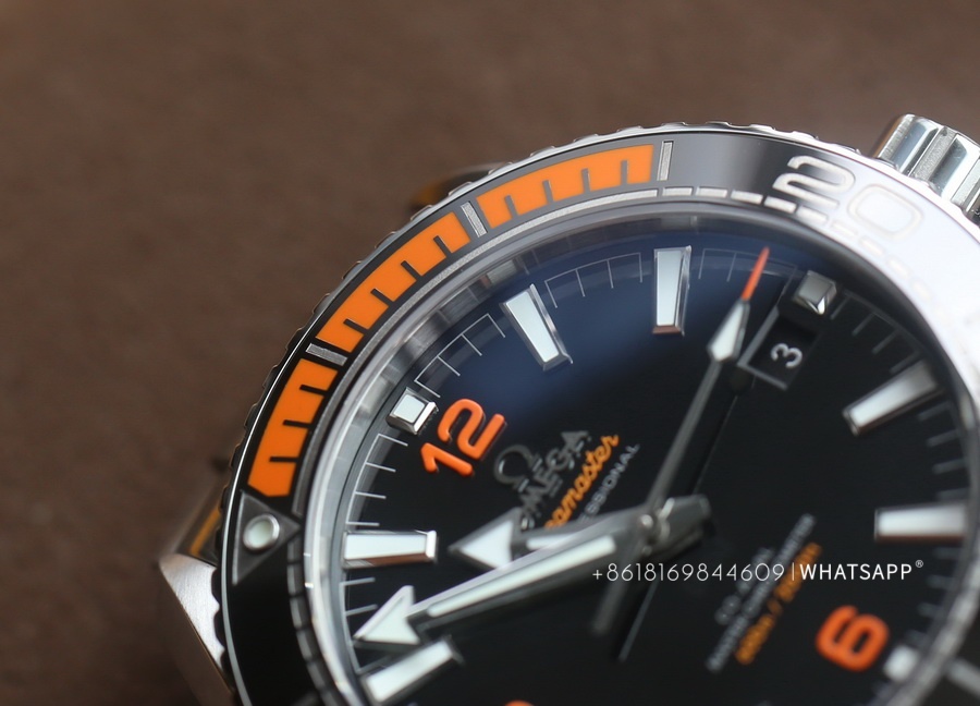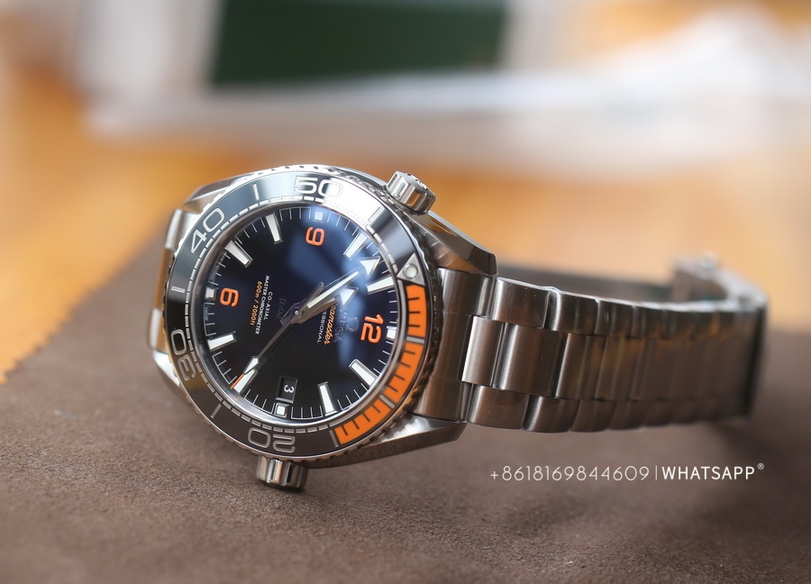 This Omega SEAMASTER PLANET OCEAN 600M is manufactured by the VS Factory, with a case diameter of 43.5mm. Notably, this SEAMASTER model features an orange rubber inset on the ceramic bezel, adding to its distinctive appearance. Equipped with a replica 8900 movement, this watch offers a power reserve of approximately 60 hours. VS Factory’s Omega replicas are widely regarded as the best on the market, making this watch a must-have for fans of the Omega SEAMASTER PLANET OCEAN 600M.