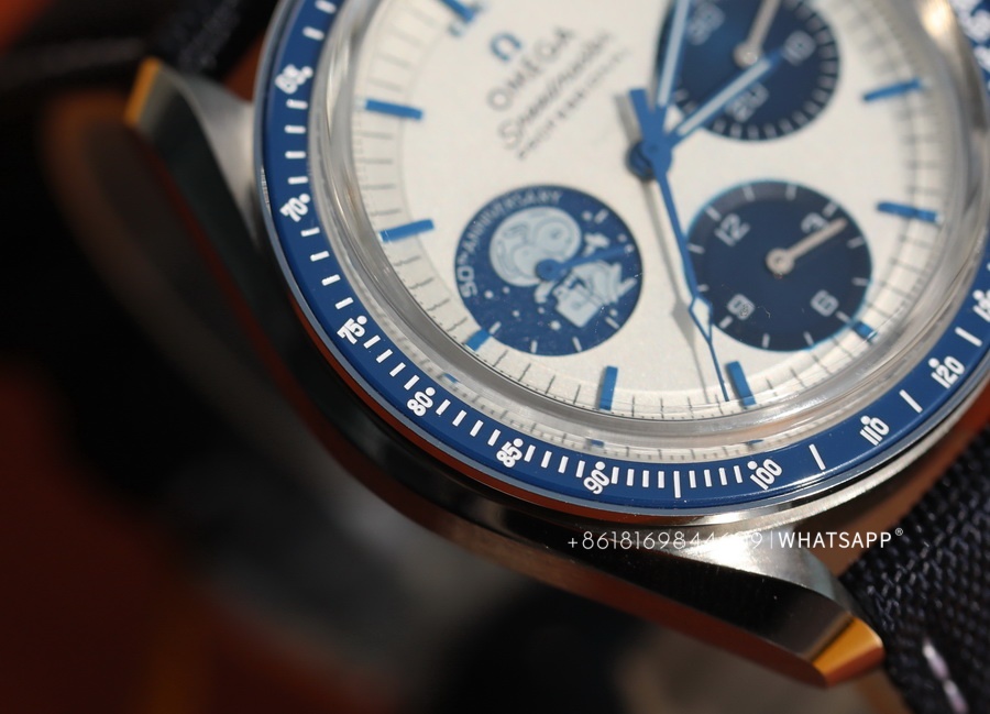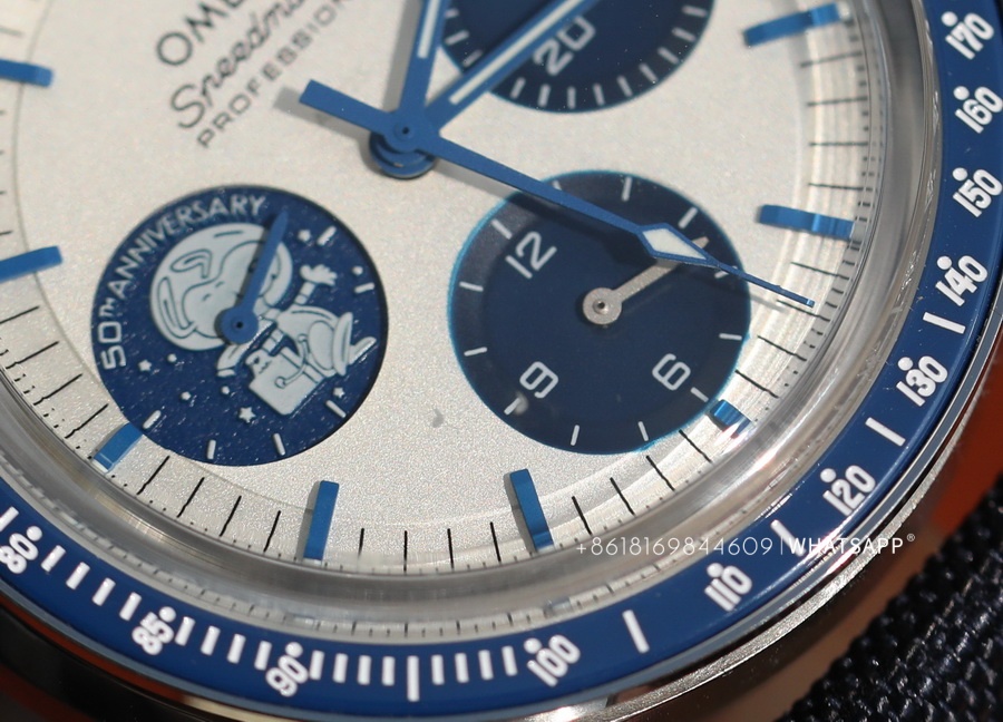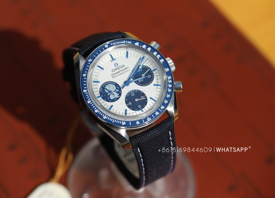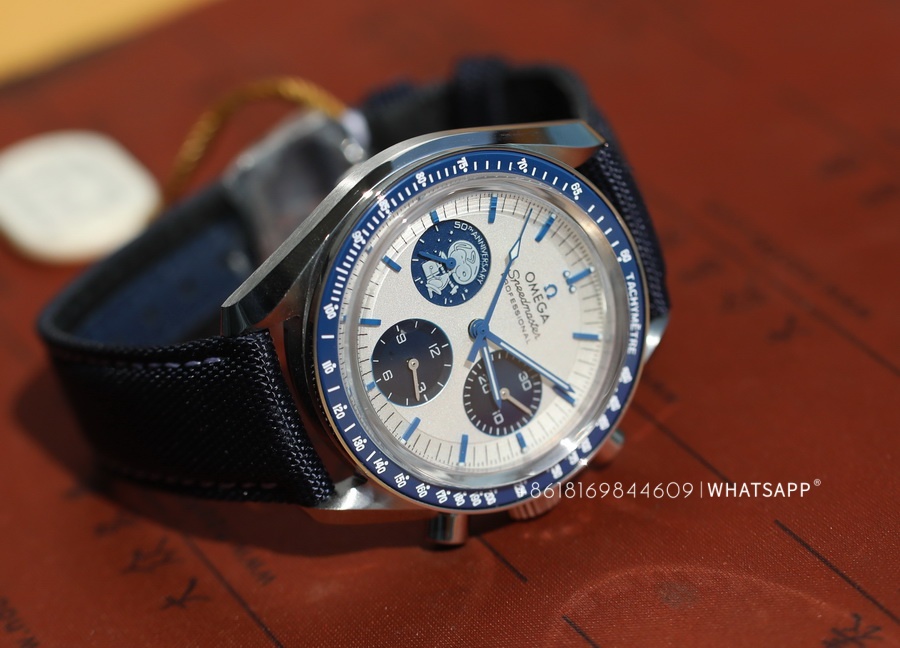 This watch has a diameter of 42mm and is a special edition watch launched to commemorate the 50th anniversary of Omega’s moon landing watch. Excitingly, now you can buy a 1:1 replica version. The replica Omega Speedmaster Snoopy watch features a Seagull manual movement, and all functions are exactly the same as the genuine one! The Snoopy relief pattern at the 9 o’clock position of the watch dial is exquisitely crafted, just like the genuine one, and both the front and back of the watch use sapphire mirror surfaces. The highlight of this watch is the "rocket lifting off" pattern on the back of the watch, which is interactive. When the chronograph of the watch is activated, the rocket on the back slowly rises, continuously looping! This factory truly achieves the appearance, functionality, and authenticity of the genuine watch.