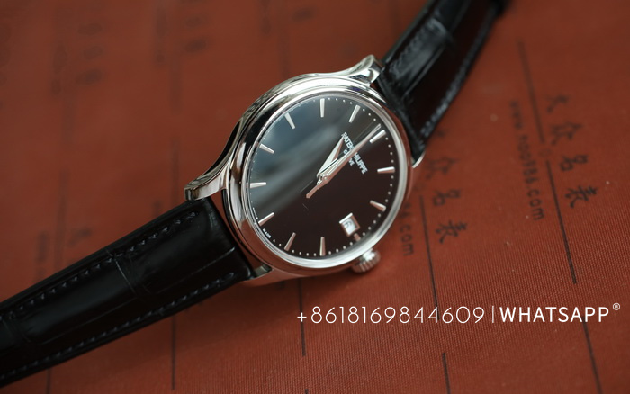 The watch measures 39mm in diameter and 9.58mm in thickness. Currently, only replicas of the Patek Philippe Calatrava series produced by 3K Factory achieve the authentic ultra-thin thickness. It features a replica CAL.324 S C movement, identical to the one used in the Patek Philippe Nautilus 5711, exclusively provided by 3K Factory. The watch adopts a "flip-open" design, where the metal cover on the back can be opened to reveal the exquisite CAL.324 S C movement, reminiscent of vintage designs used by Patek Philippe a century ago. In addition to its exceptional movement, the watch comes with a crocodile leather strap and is ideal for aficionados of classical Swiss timepieces. Dial options include black and white.