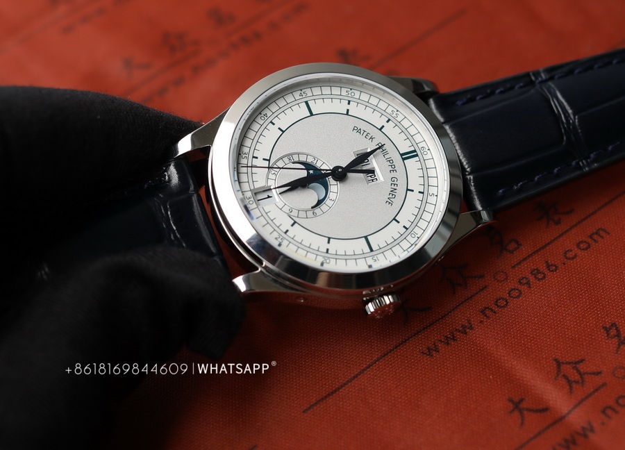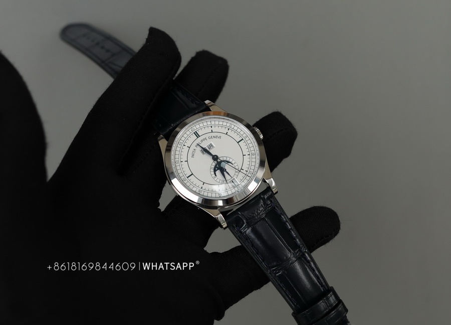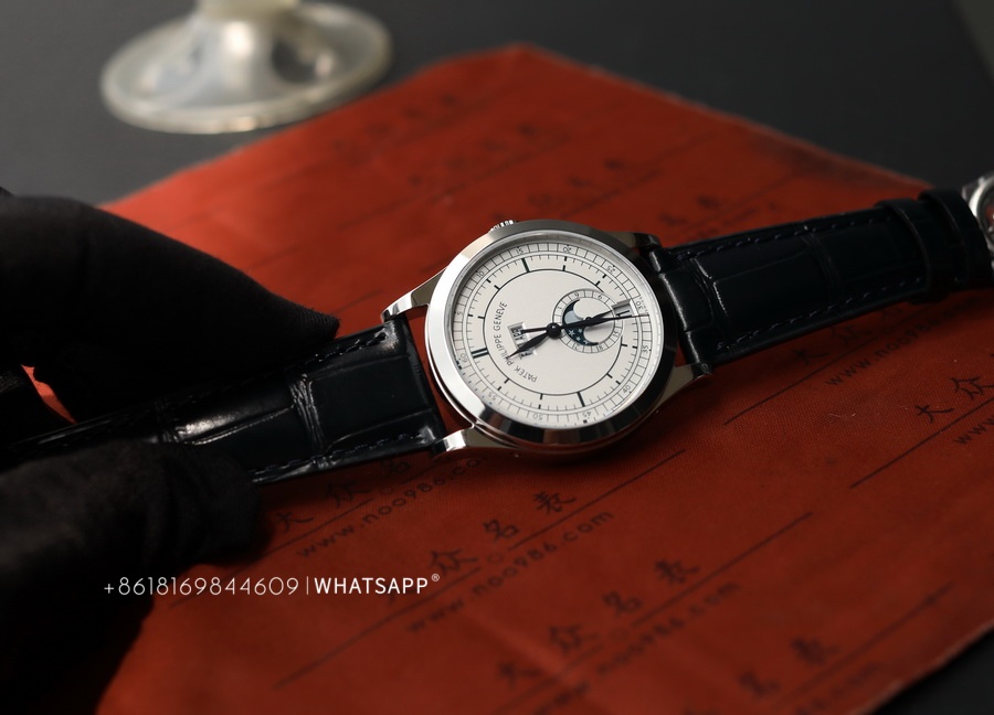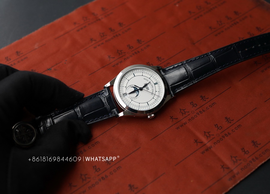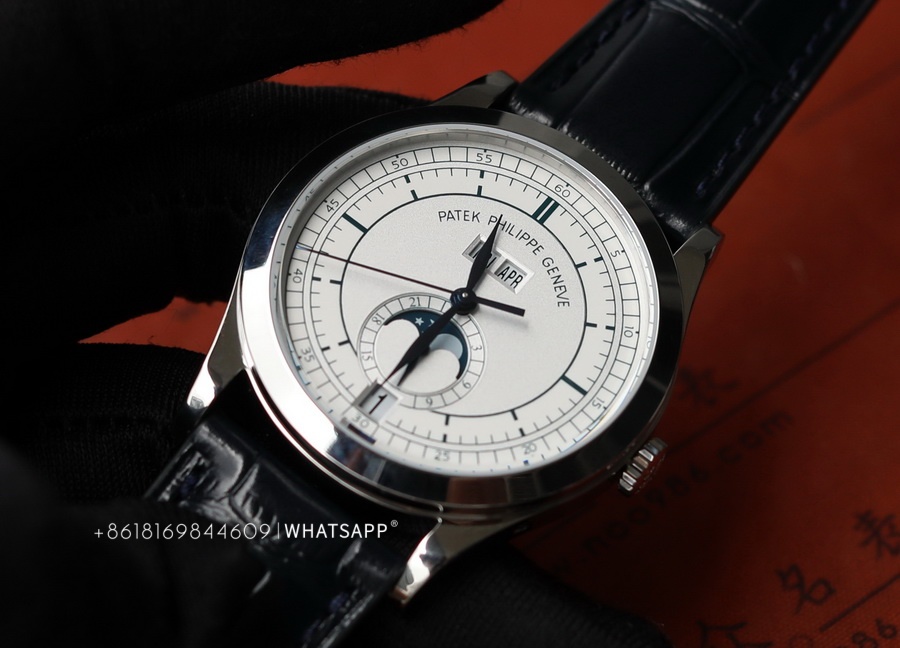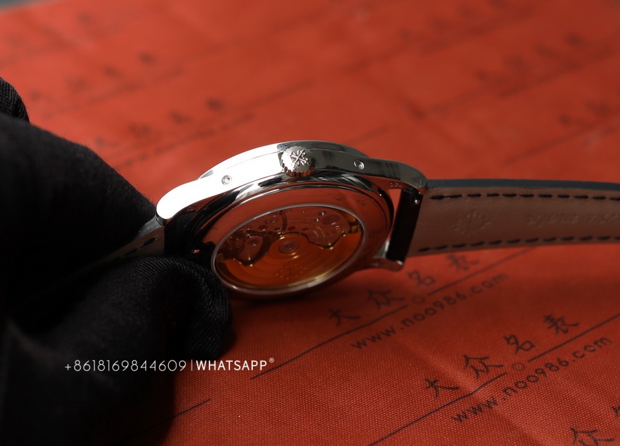 This watch has a 38mm case and features an ultra-thin design. This style has been part of Patek Philippe’s collection for decades. While large dials are currently more popular, the 38mm model remains a timeless classic in the market.