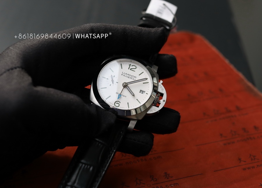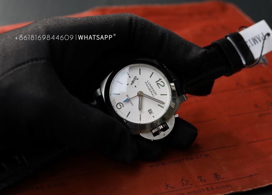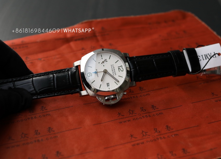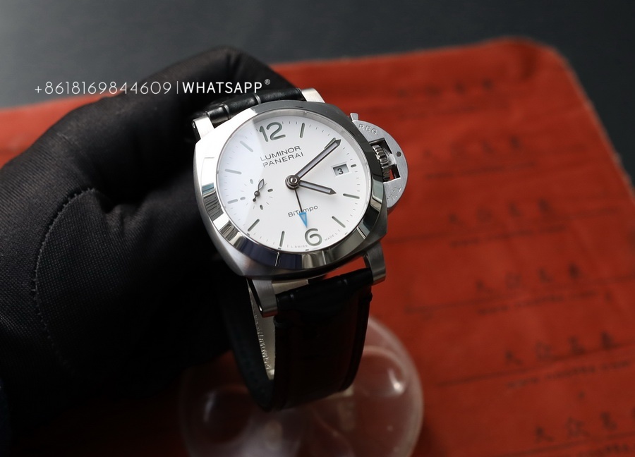 This is a brand new 40mm Panerai LUMINOR watch with a white dial, designed for those with smaller wrists. If you are a woman who enjoys sporty mechanical watches, this watch is also very suitable. It features a replica P.900/GMT movement and offers a dual time zone display, provided by VS Factory. The watch has a stainless steel case, a sapphire crystal, and a certain degree of water resistance. The GMT hand is displayed in blue. VS Factory offers nearly 80% of Panerai replica models. Feel free to visit our website's Panerai watch catalog to browse more models.
