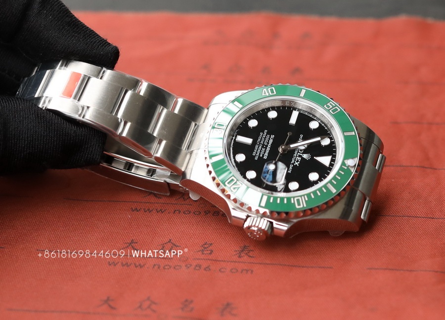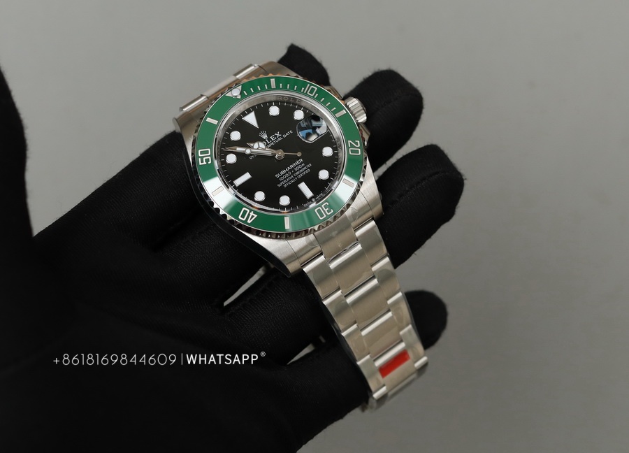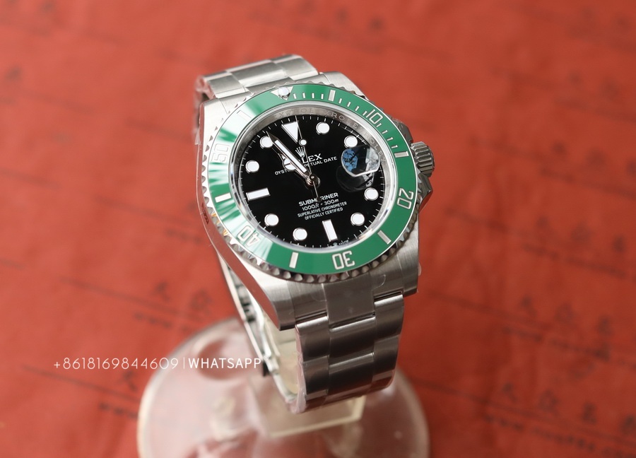The quality of the 41mm Rolex Submariner replica watch from VS factory is said to be excellent. The VS factory's 41mm version of the Submariner is made by purchasing genuine watches and remolding them, rather than upgrading from the older 40mm Submariner case. It is also made of 904L steel, with the main differences being the internal movement, size, and dial color. The new 41mm Submariner features a black dial with a green ceramic bezel.