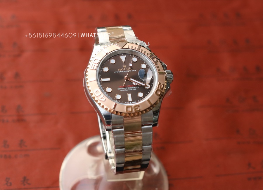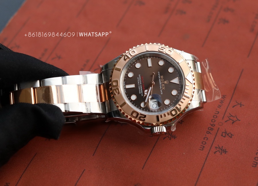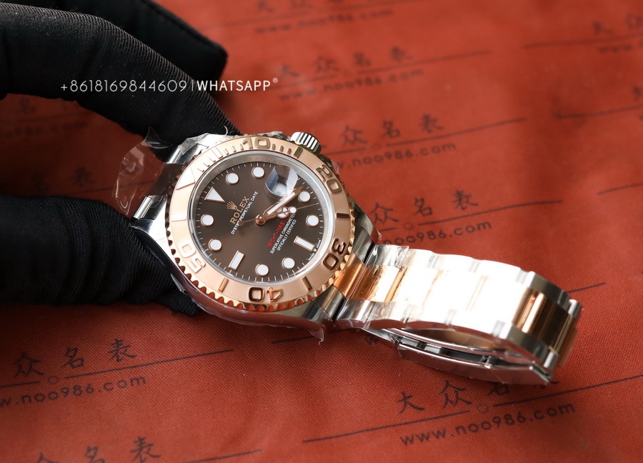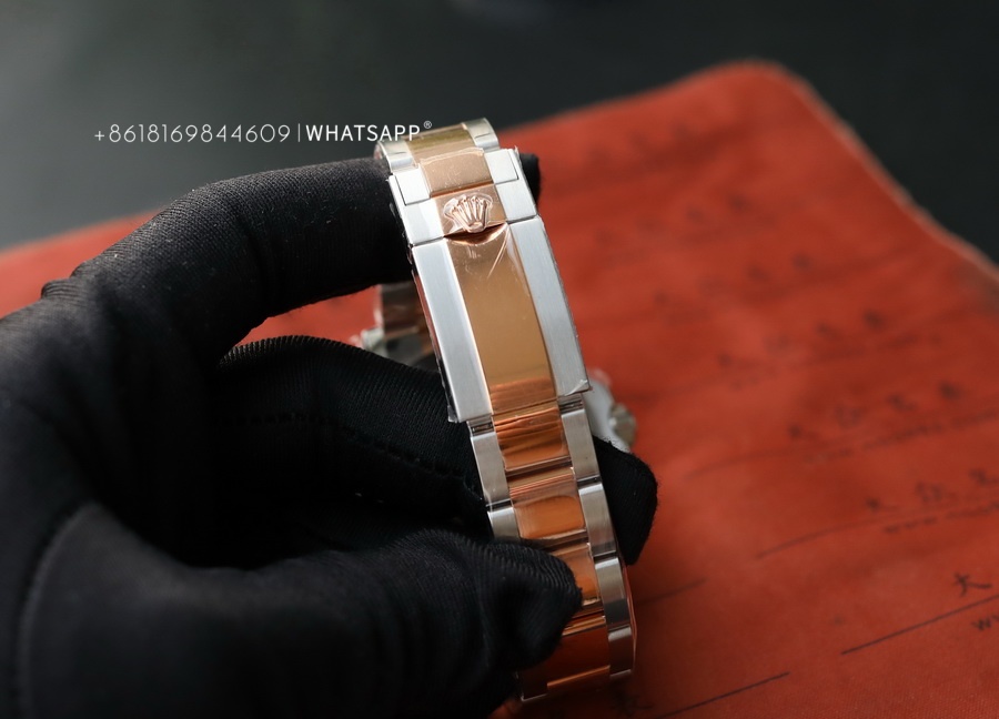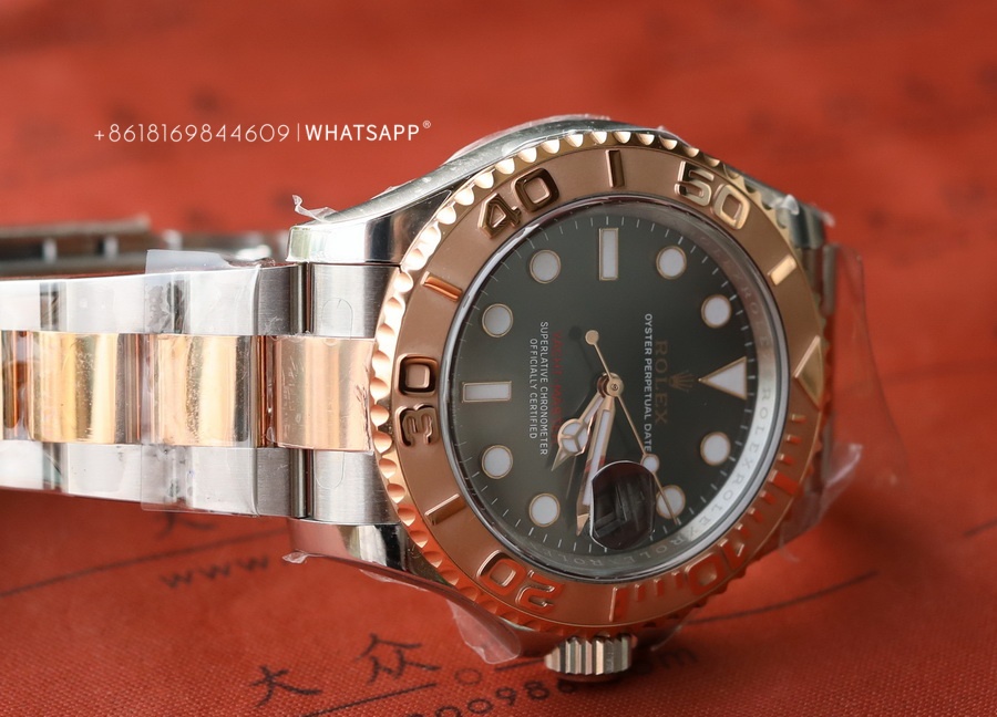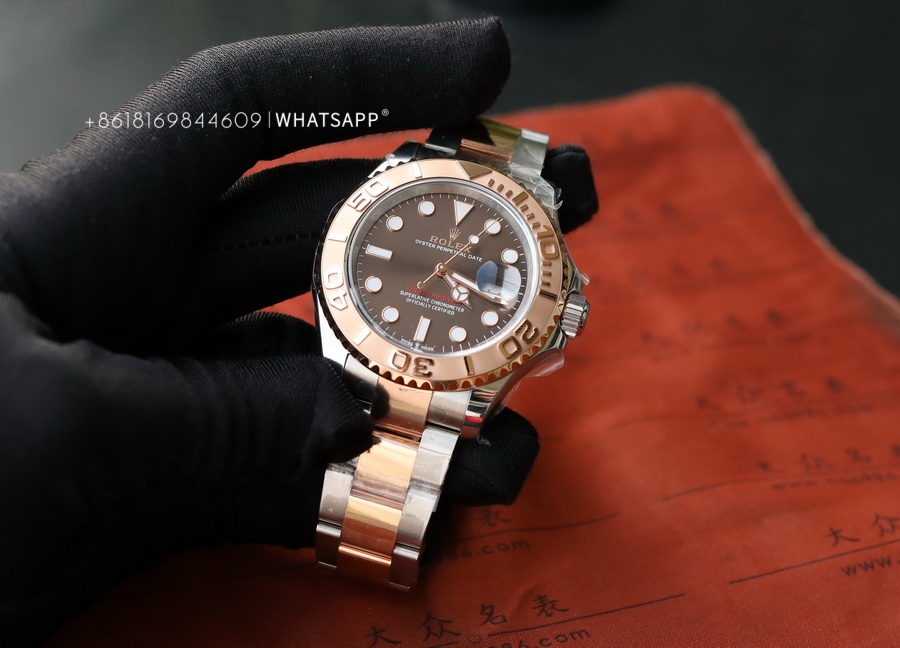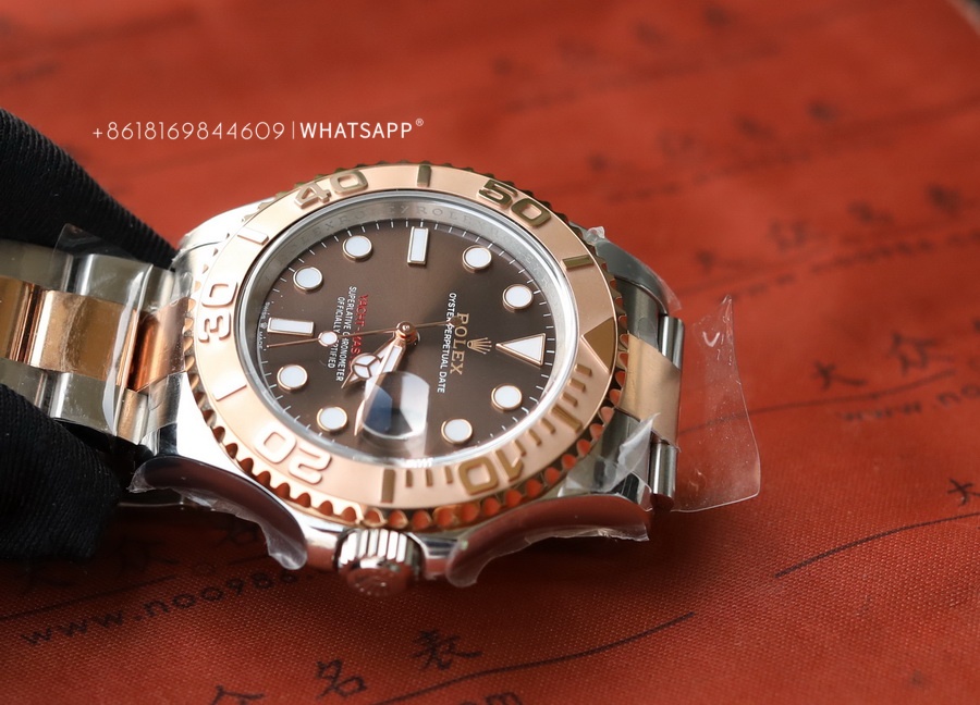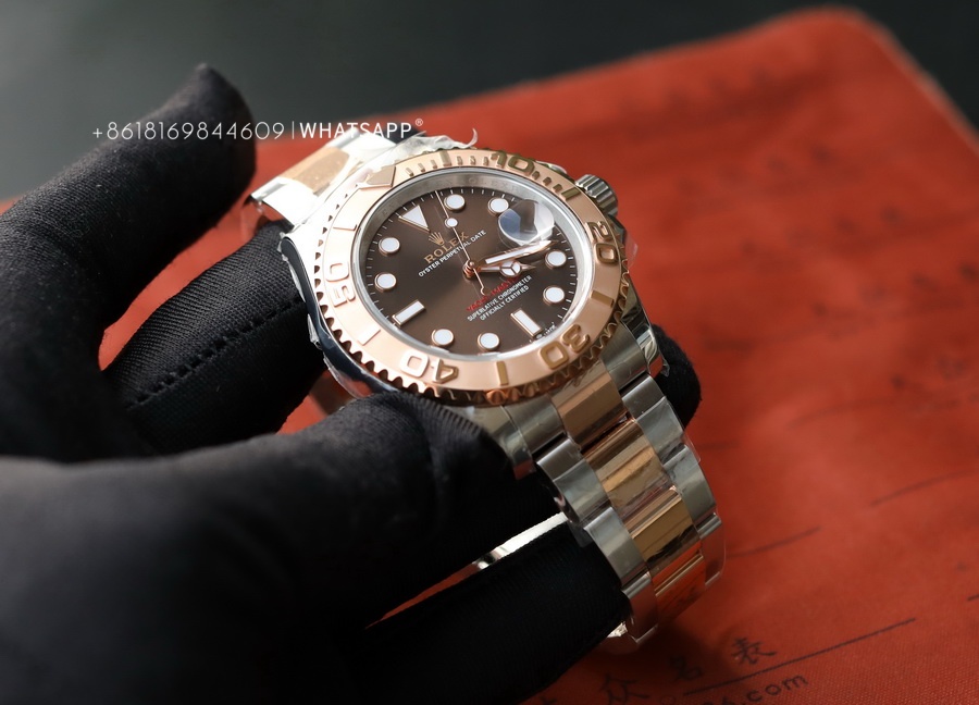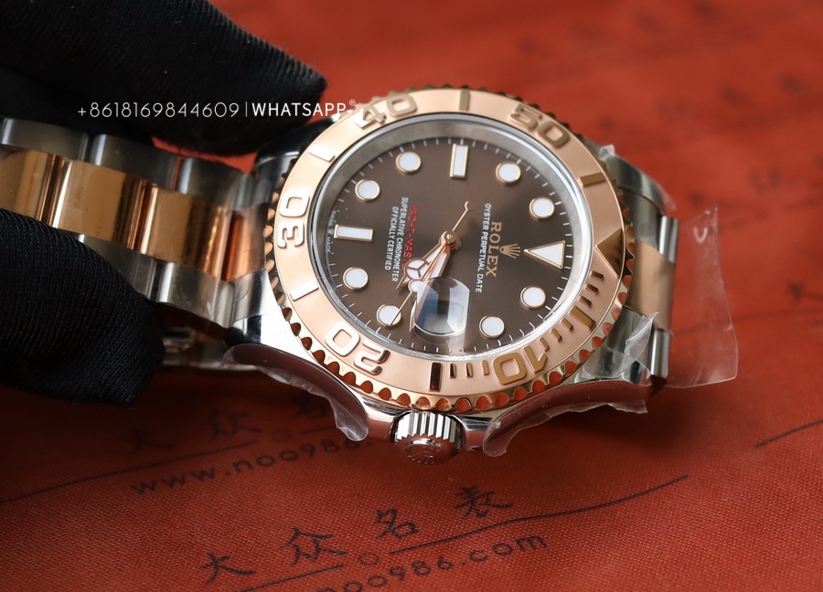 This YACHT-MASTER watch features a coffee-colored dial paired with a two-tone bracelet, which costs more to produce than the steel version. The factory disassembles and PVD coats each section of the bracelet to ensure uniform coloring. We can see that the coloring is even from the gaps in the bracelet, and the gold color is guaranteed to last for over 3 years. The movement uses the 3235 caliber, providing a power reserve of up to 70 hours, just like the original.