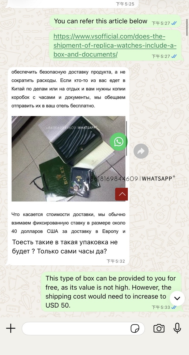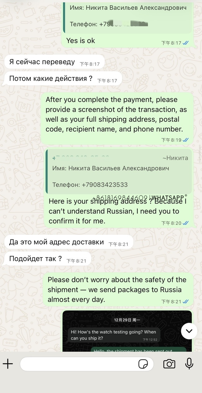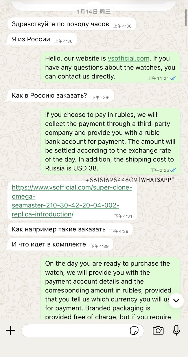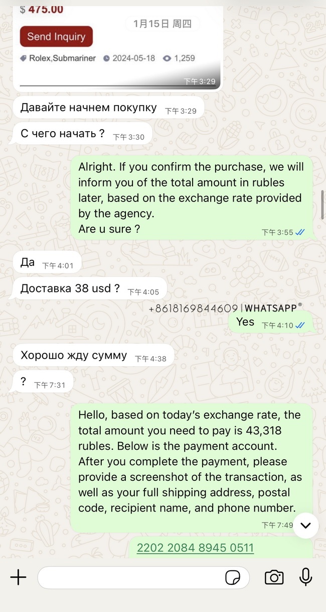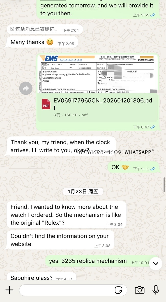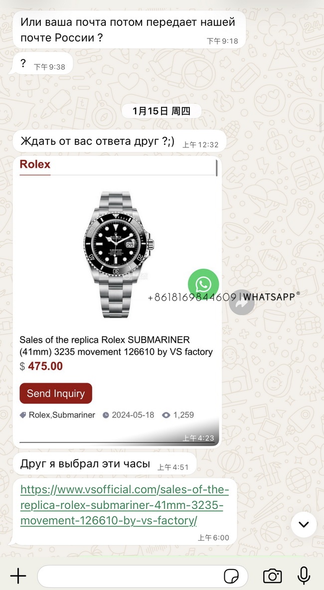 Transaction record of Rolex Submariner Replica purchased from Russia buyer