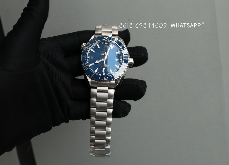 This Omega SEAMASTER PLANET OCEAN 600M features a blue dial, crafted from 316L stainless steel, and houses a replica 8900 movement. Available in blue or black, this watch is depth-rated for underwater use and boasts a power reserve of up to 60 hours. Its movement functions include a calendar with reverse adjustment, mirroring that of the authentic piece.