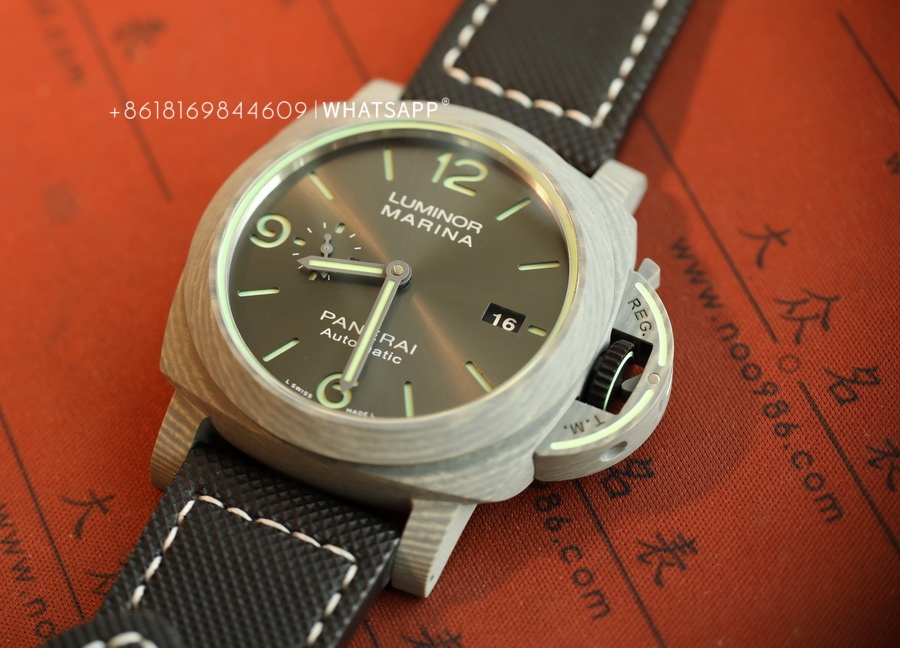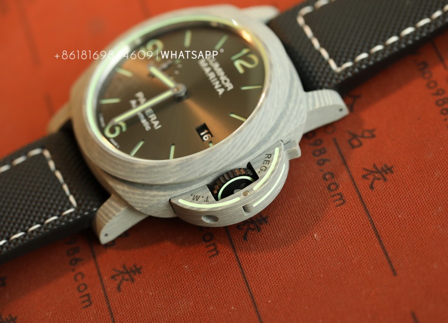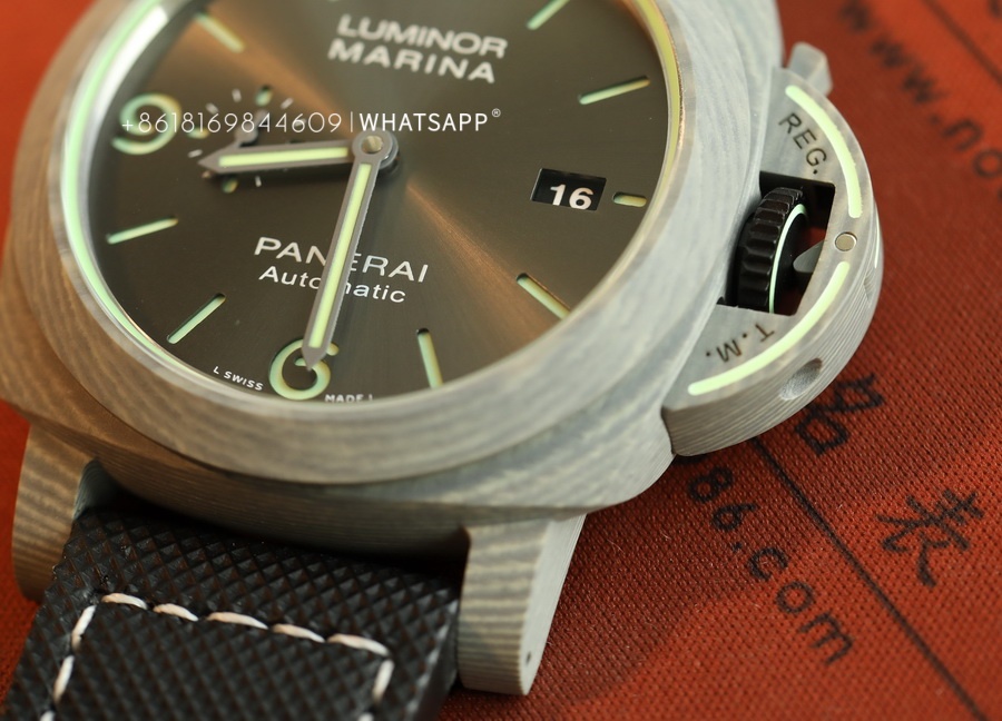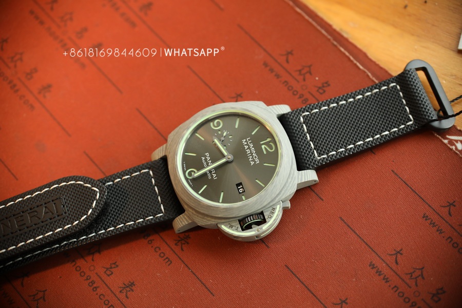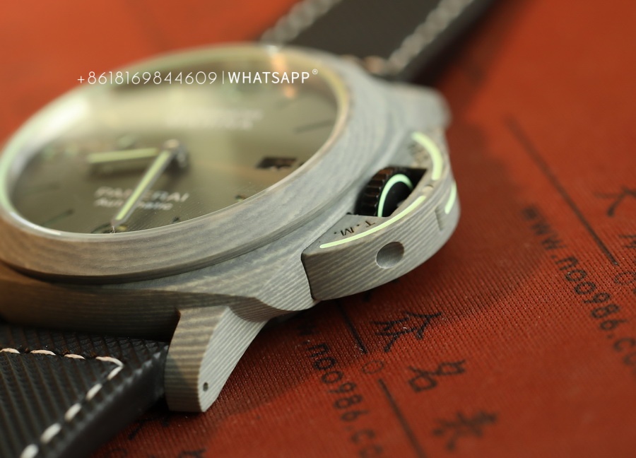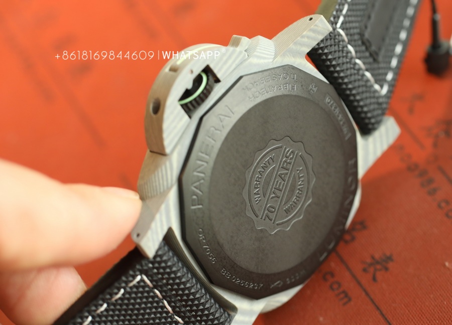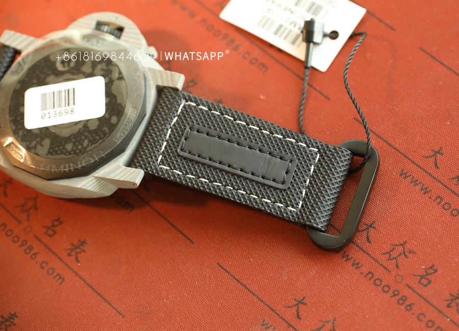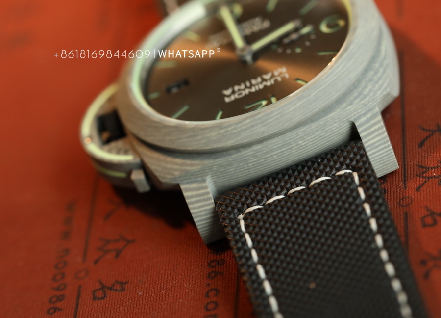In terms of appearance, the PAM01119 FIBRATECH has a silver-white texture. The watch features luminescence on the dial, the bridge guard of the case, and the stitching of the strap. It uses a replica P9010 automatic movement. The watch has a 44mm diameter, and the case back is solid, with an engraving of the 70-year warranty. This model is hard to find in the genuine market, while the price of the replica is much lower than the authentic version, with a similarity of over 95%. For those who appreciate watches made from unique materials, this is an excellent option to consider.