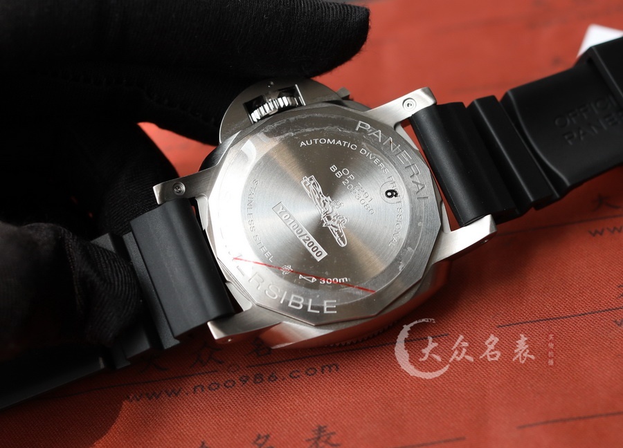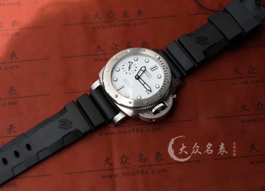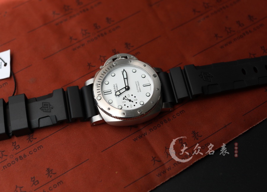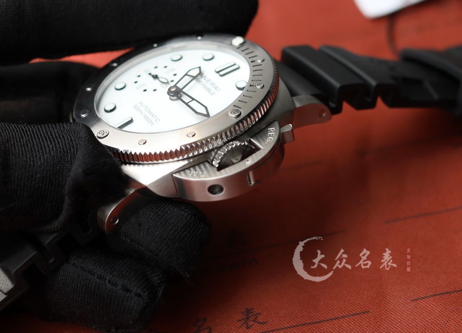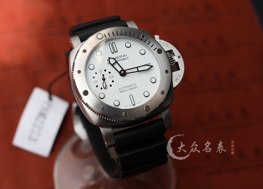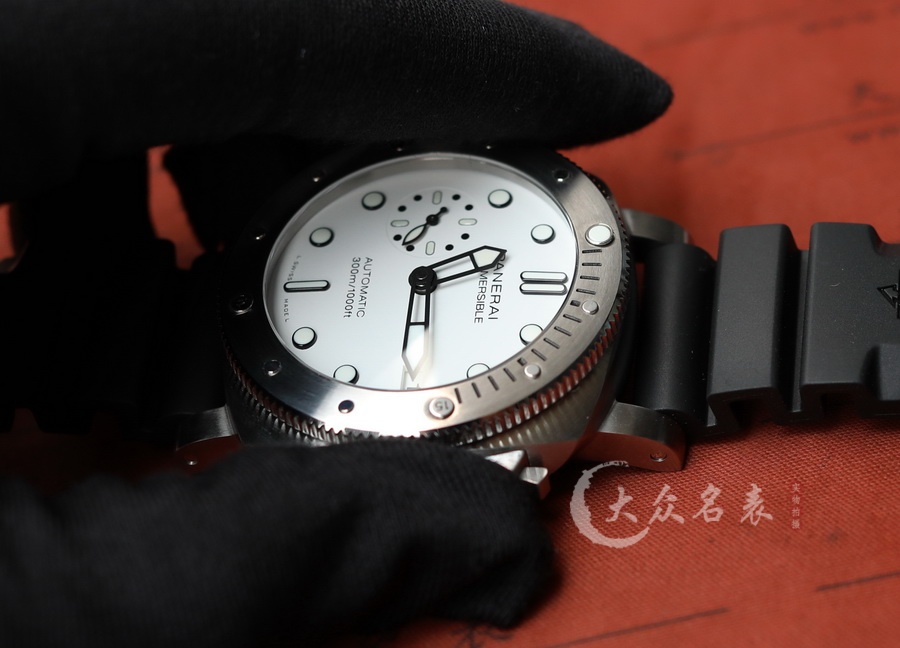 This watch features a 42mm diameter, making it a medium-sized option within the Panerai lineup. The dial is designed in a snowy white color. As part of the SUBMERSIBLE series, it offers excellent water resistance, suitable for swimming and diving activities. The watch is equipped with the VS Factory’s P.900 replica movement. It has a rotating bezel, and the case back is non-transparent, emphasizing a sporty style. The back of the watch is engraved with a submarine.