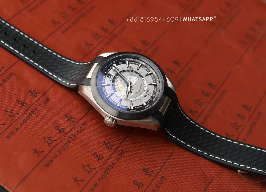 This is a titanium version of the WORLDTIMER Omega SEAMASTER 150M watch. The watch features a lightweight design and a higher hardness case, weighing only about 93 grams. The bezel of the watch is made of black ceramic, while the metal parts are made of titanium. It comes with a rubber strap and supports deep waterproofing. The dial pattern is a miniature version of the "Arctic Circle", which is exquisitely crafted!