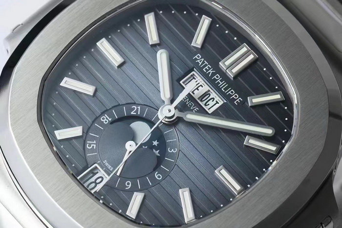 This is a newly launched replica watch of the PATEK PHILIPPE Nautilus 5726S by ZF Factory. In terms of functionality, it features month display, week display, calendar display, and moon phase function. The watch can also identify leap years, requiring only a calendar reset in March each year, which is considered a breakthrough for a replica watch. Both the front and back of the watch have sapphire crystal mirrors, and the watch has a diameter of 40.5mm. I believe that friends who have been following us have seen the previous article introducing the PATEK PHILIPPE Nautilus 5711. The overall workmanship of this Nautilus 5726 watch is similar to the 5711. If you prefer a more complex dial and multifunctional watch, you can consider this PATEK PHILIPPE Nautilus 5726 replica watch.